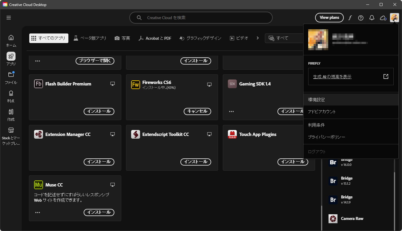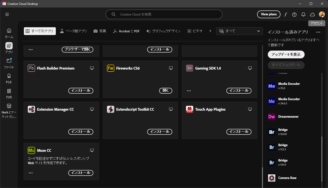 Adobe Creative Cloud Desktopを開く。(Adobeのサイトからではできませんでした。)